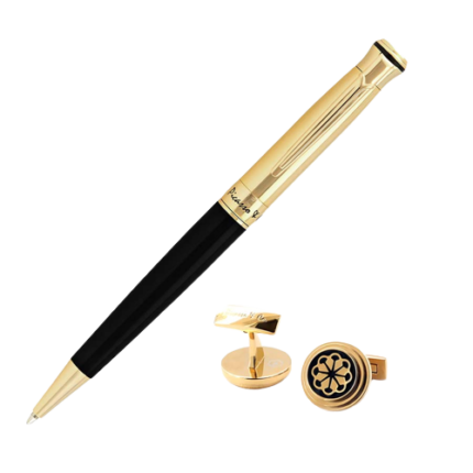 PICASSO AND CO Round Stainless Steel Gold/Black Laquer Cufflinks PCRNDBG
