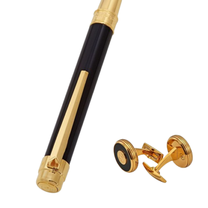 PICASSO AND CO Round Stainless Steel Gold/Black Laquer Cufflinks PCRNDBG Original price was: $95.00.Current price is: $76.00.