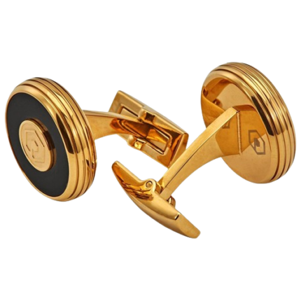 cufflink: rhodium tone ion-plated stainless steel with black carbon fiber inlay