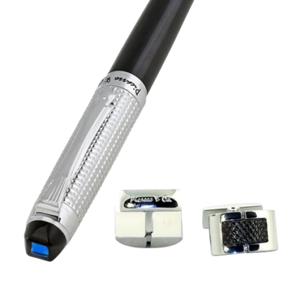 pen: roller pen crafted in rhodium-plated brass with black lacquer